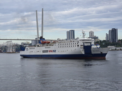지앤엘에스티 그레이스호가 9일부터 속초-블라디보스토크 항로를 연결한다. 이에 세명투어는 3박4일 일정의 여행 상품을 운영한다. 사진은 블라디보스토크항구에 입항하는 그레이스호 / 세명투어